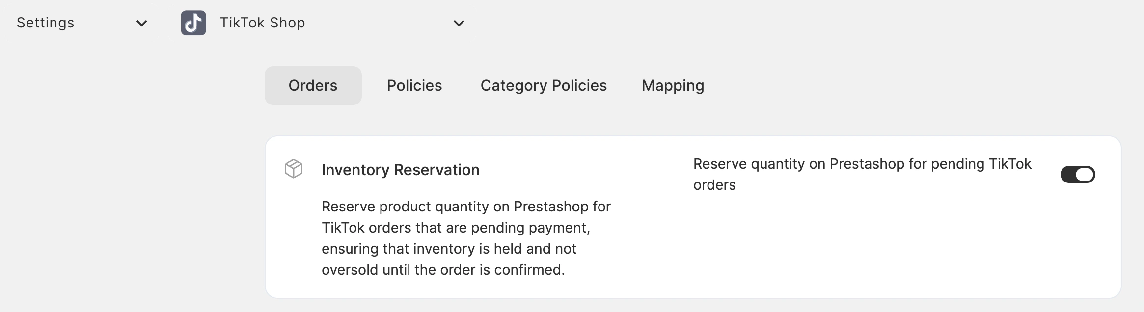 Enable this feature in Settings > Orders > Inventory Reservation for each channel account: