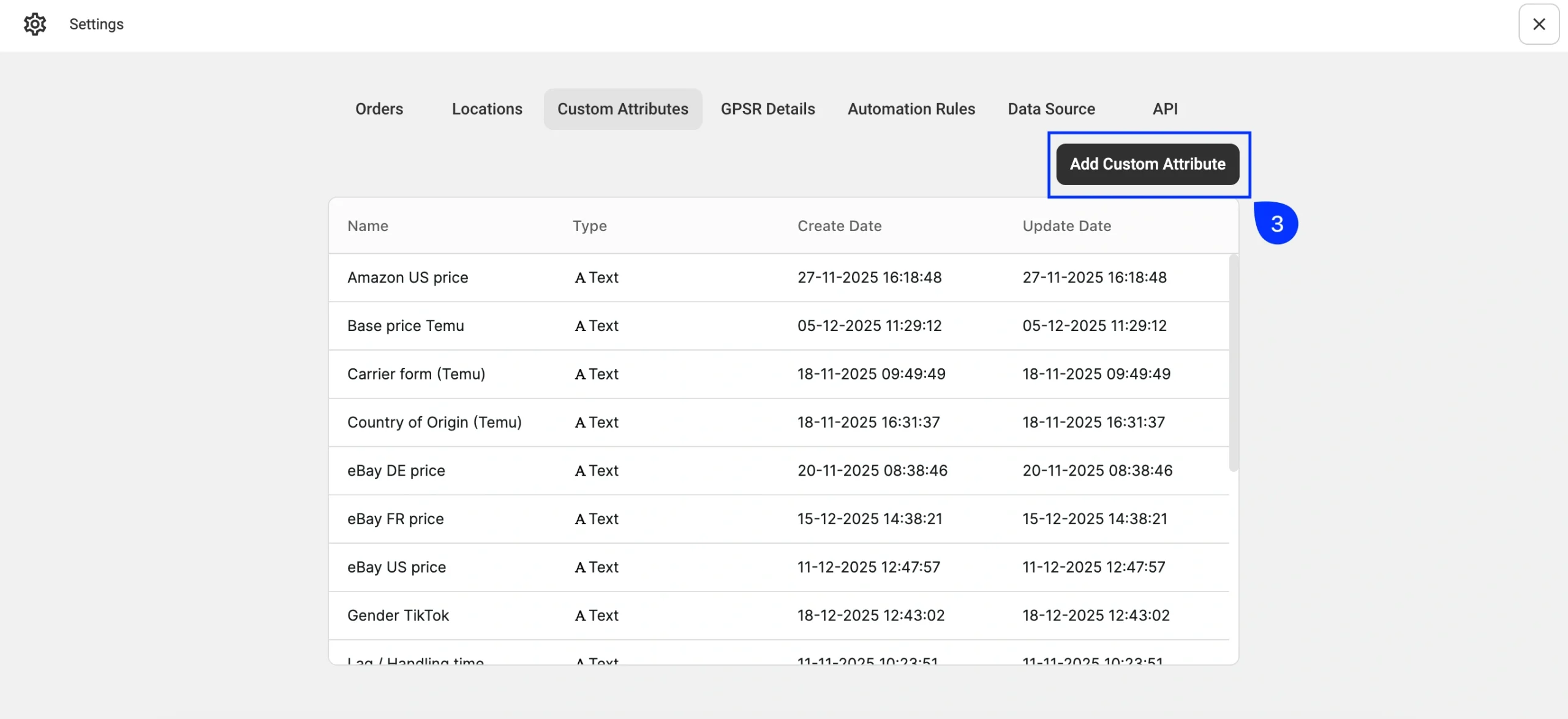 ℹ️ Deleting a custom attribute will remove it from all products in your Catalog.