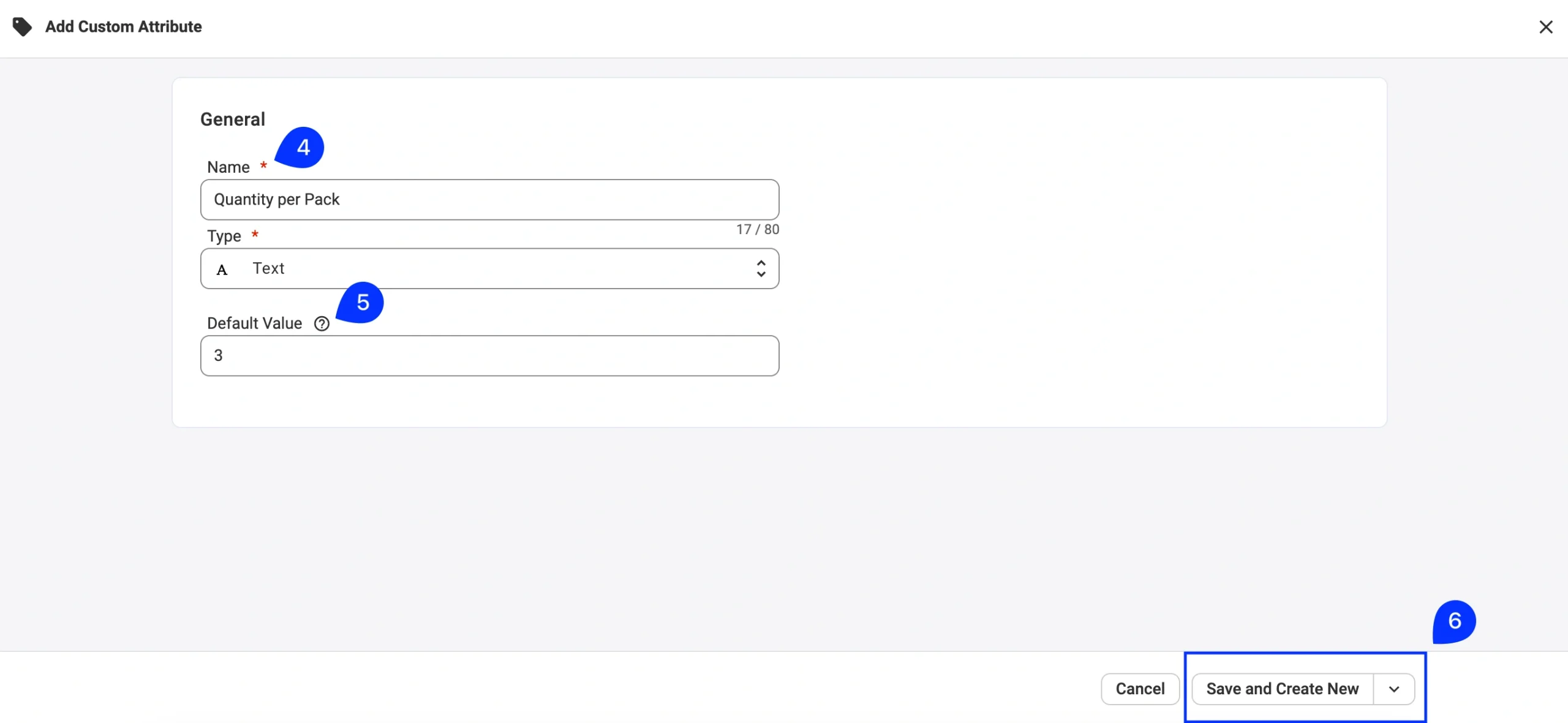 4) Enter the attribute name (for example, Quantity Per Pack).