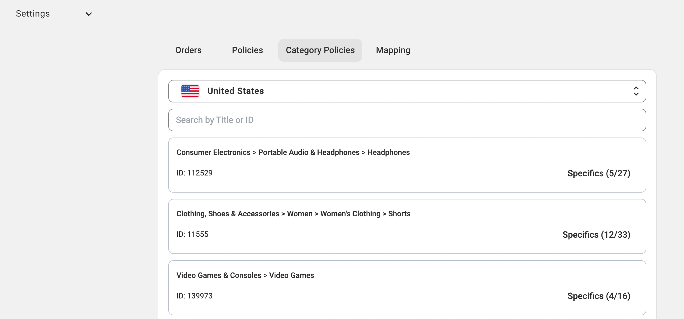 ℹ️ Category Policies are created and stored separately for each regional marketplace.