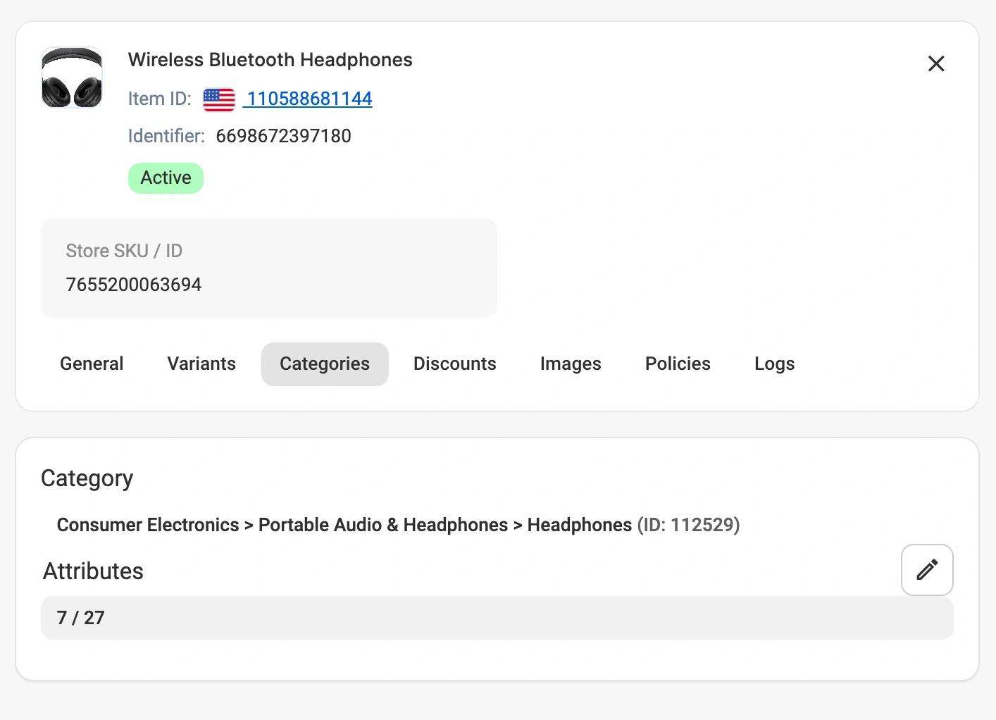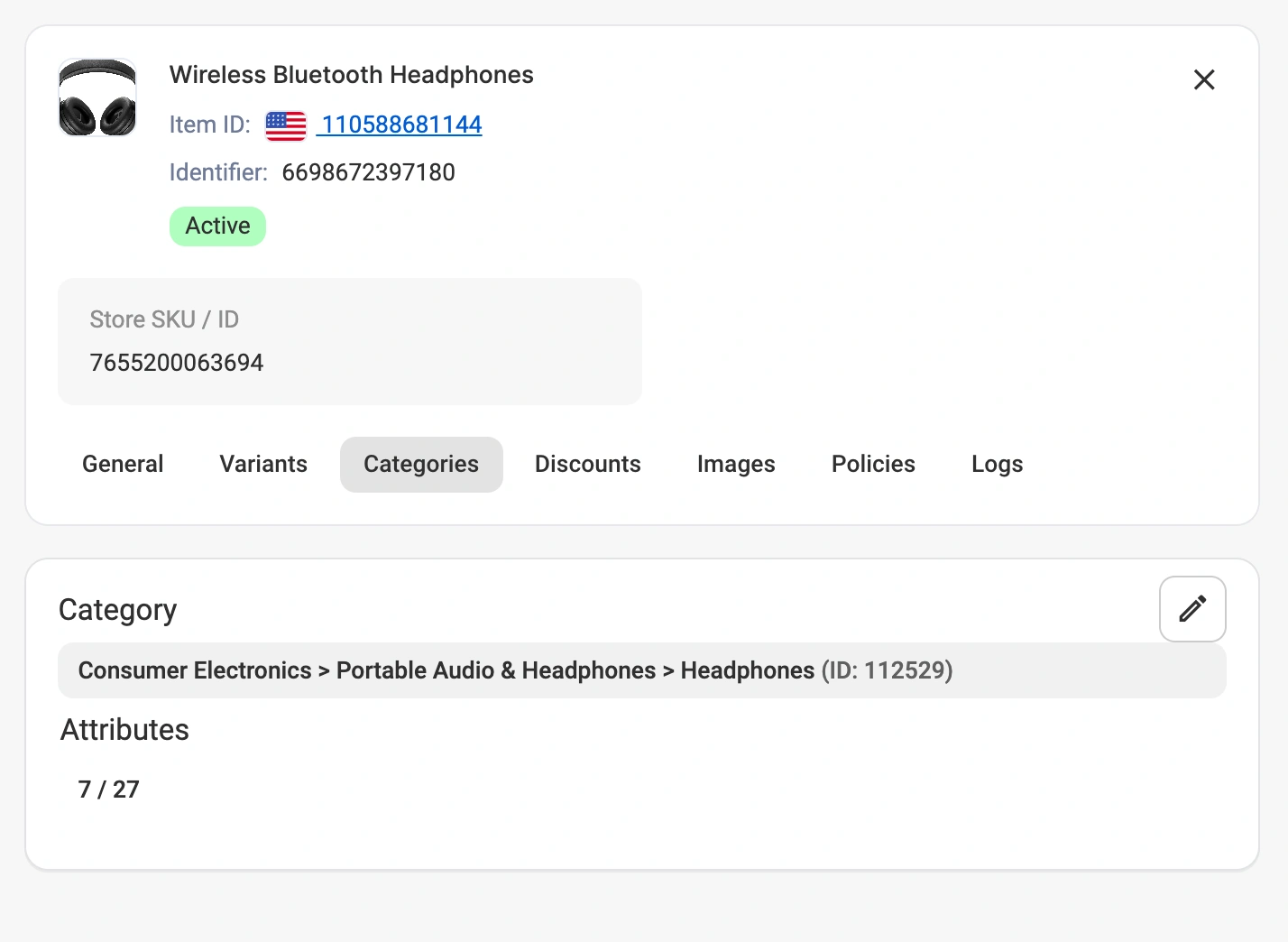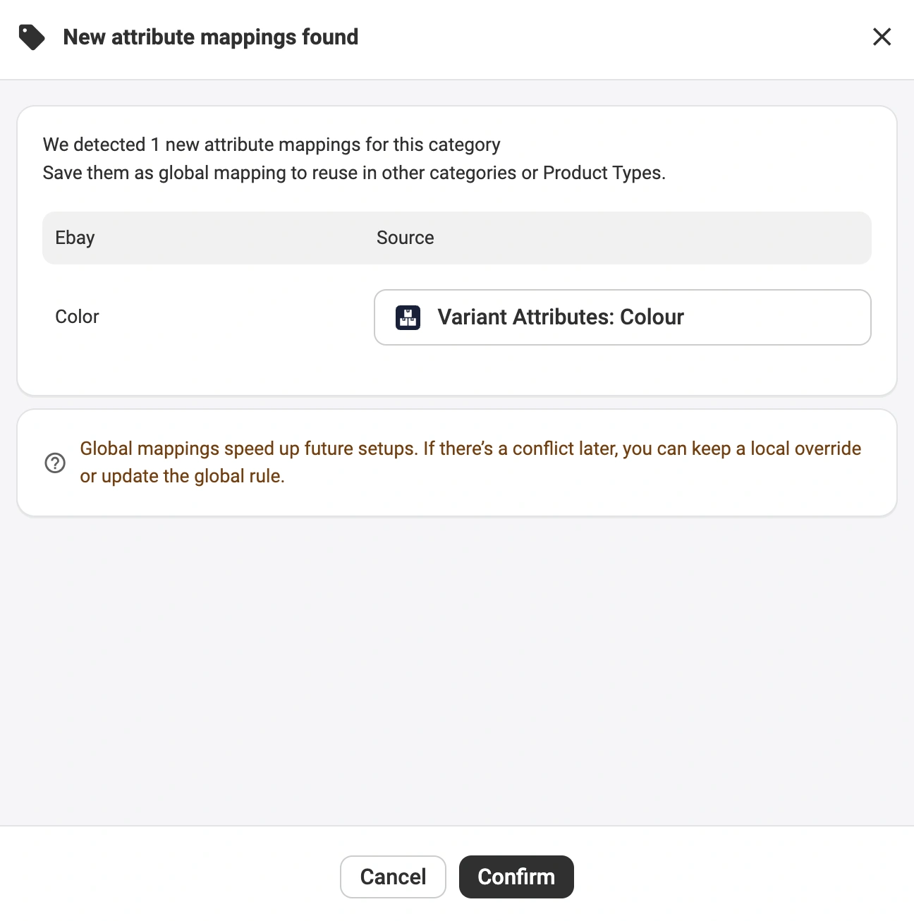 ℹ️ When a mapping is removed, it is no longer applied to new listings or during category changes. Existing products that use the mapped values aren’t affected.