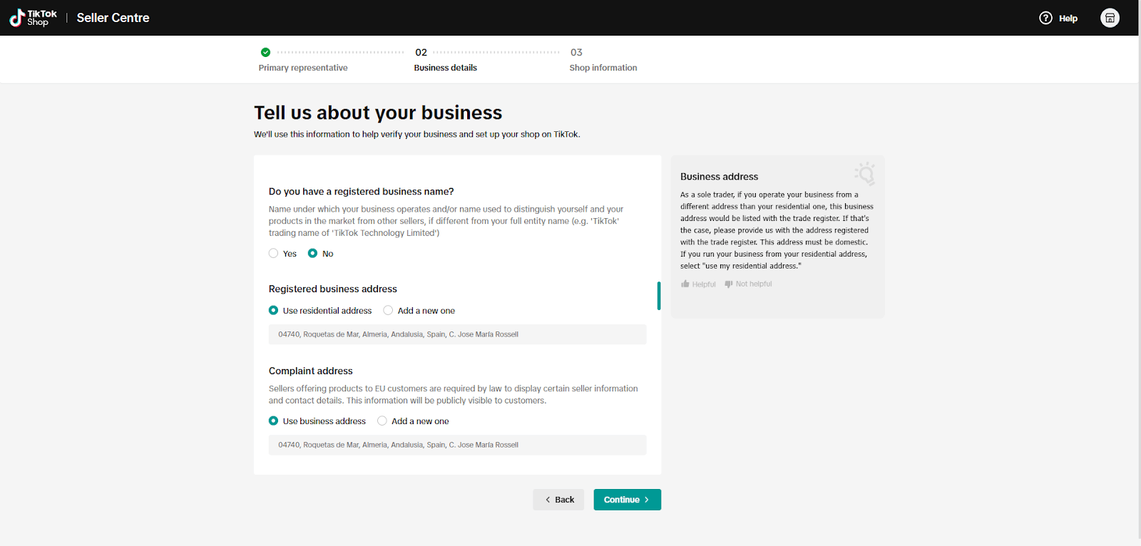 Your complaint address will be visible to buyers and can match your business address or be a separate one.