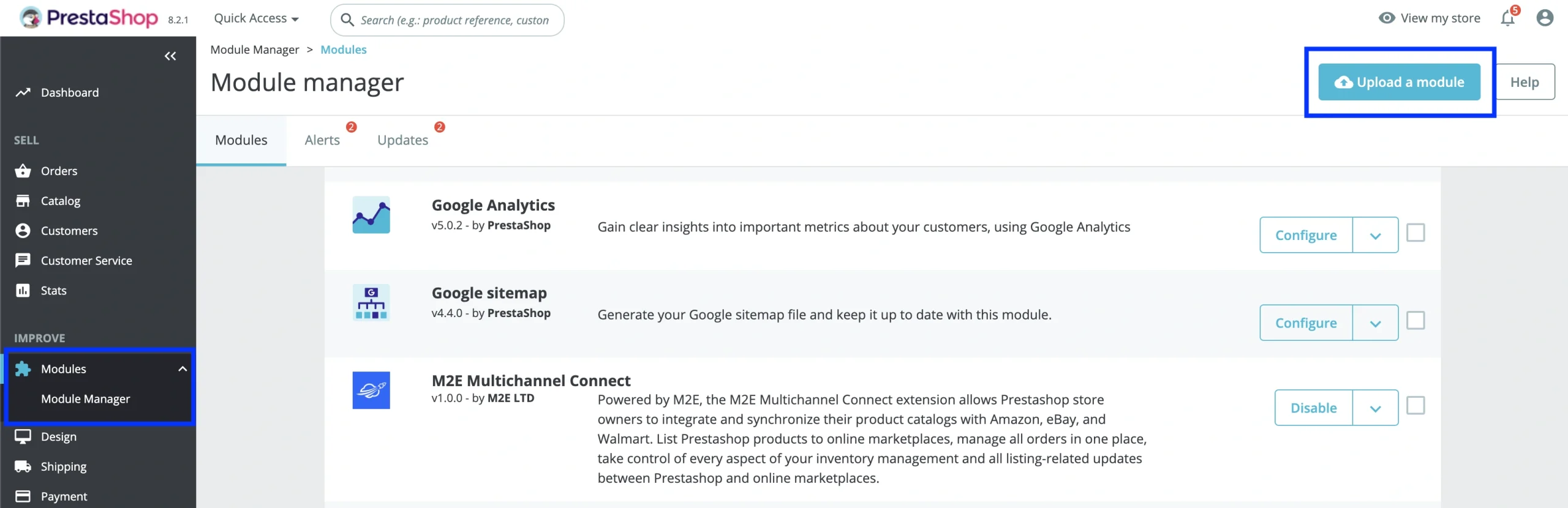 2) Nel pannello di amministrazione di PrestaShop, andate su Moduli > Gestione moduli.