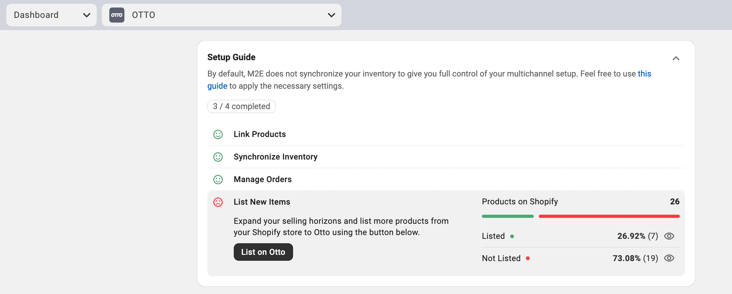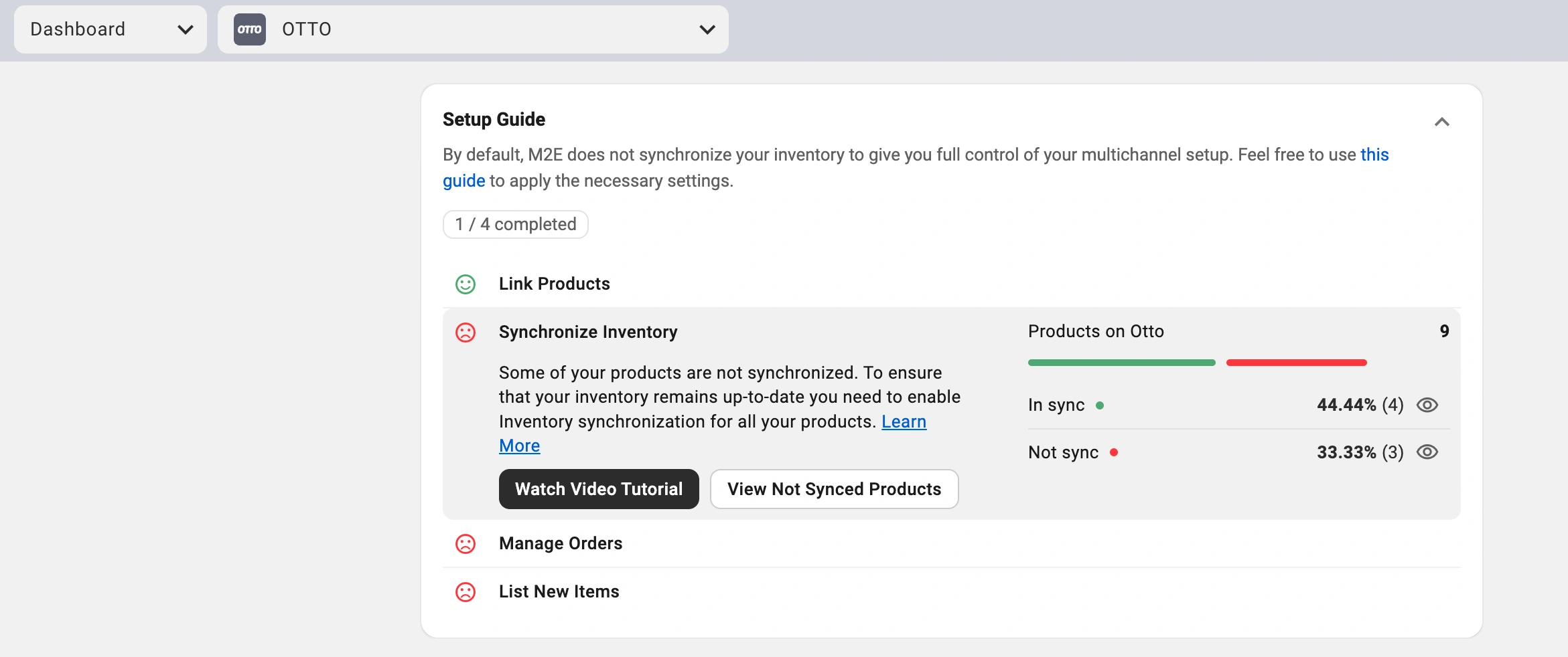 1) Vai alla pagina Dashboard in M2E Cloud OTTO Importer.