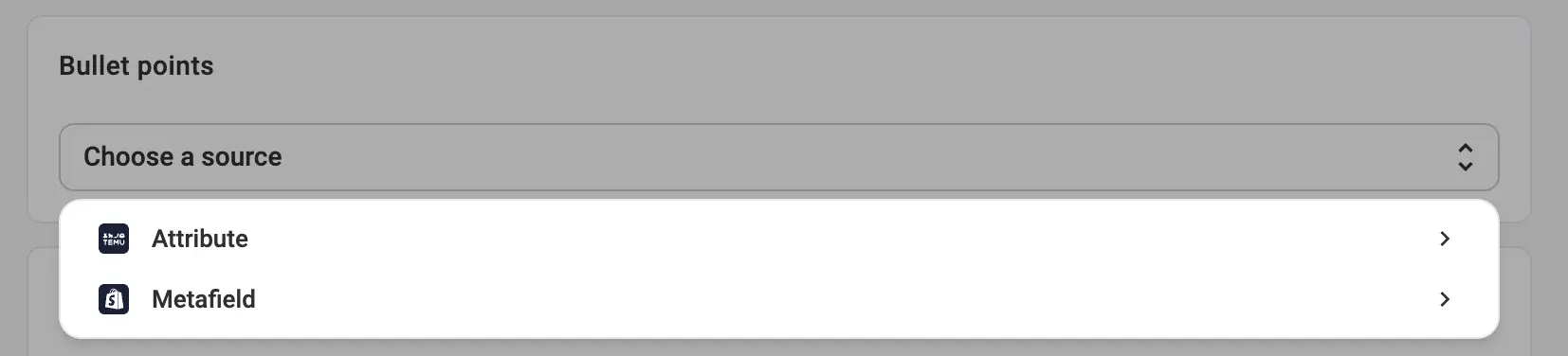 Escolha uma fonte para seus marcadores. Selecione se eles devem ser extraídos de um atributo ou de um metacampo, dependendo de onde os detalhes do produto estão armazenados.